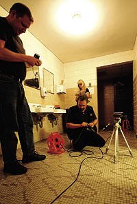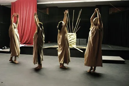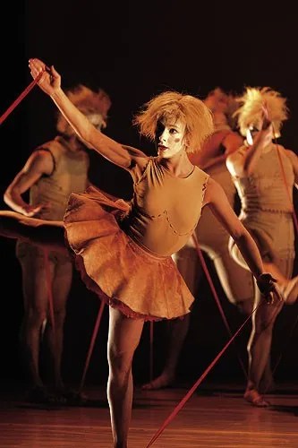 They must have seen some mighty weird stuff, because Oyster‘s full of it: male dancers with no arms, living dolls, froglike ballerinas on leashes, a giant, and a human bell. According to Pollack, the sequence “explores how human beings, performers, are manipulated into doing things.” There’s intrinsic meaning behind the action, even if the plot is fathomless. “The elements are linked together,” says the director. “We have internal logic, a world we create on stage.”
