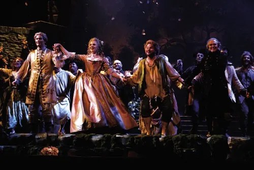 But something interesting has happened as a result of these cutbacks. Instead of discussing cool sets or outlandish costumes, people are talking about the performances. Whether or not they appreciate the modern classical music of Wolfgang Rihm, they zero in on Heather Buck’s touching portrayal of Proserpina. For many, composer/conductor Neely Bruce is as much a star of ballad opera Flora as its flowery decor. And the actors of Laughter‘s Gate Theatre have not been upstaged by their costumes this year.