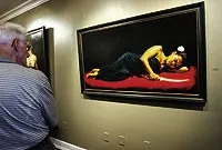 Taylor’s cheeky nudes are likely to have angelic wings on their backs or fried eggs for faces. Peggy Howe’s pastel nudes are more traditional but no less intriguing, capturing somber moments with stark figures on black backgrounds.