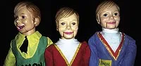 They’re creepy but hilarious enough to have won the Best Sketch Performance at 2007’s Miami Improv Festival. The dummies vary their act every time they appear. When the Transformers movie opened, one of the Simons became a truck in disguise. Another suited up as a wheelchair-bound “Simon Hawking,” talking via a computer voice, and answering cosmic questions from the audience.