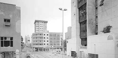 “I look like a pillock with my bald head, Hawaiian shirt, and bizarre camera,” says Norfolk. “A harmless dickhead. If I wandered round with a TV camera or a small Nikon I’d be murdered or chased off. I’m amazed that these news photographers dress like soldiers — they’re just asking to be shot at by a sniper. Sometimes the best place to hide is in plain view.” His brazen attitude has helped him to generate images that seethe with personal frustration and compassion.